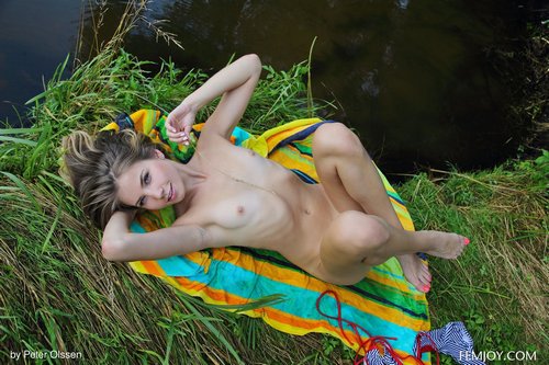 Описание: На улице было так хорошо, что стройная молодая девчонка, надев купальник и взяв подстилку, пошла на речку. Здесь настолько классно, что пока никого нет, милашка разделась догола. Ей захотелось искупаться голышом, ведь это так возбуждает, когда погружаешь свою киску в прохладную воду. А выйдя из озера, веселая крошка сделала несколько интимных фоток на подстилке, показав свою маленькую грудь.