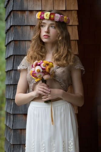 Описание: Гуляя возле своего дома, симпатичная сельская девчонка с кудрявыми волосами сплела себе венок из полевых цветов и надев его себе на голову, принялась позировать перед объективом камеры. Не скромная молодая телка с красивой большой грудью, не став стесняться, сняла длинную белую юбку и начала показывать красоты сексуального тела, хвастаясь упругой попкой и гладко выбритой киской.